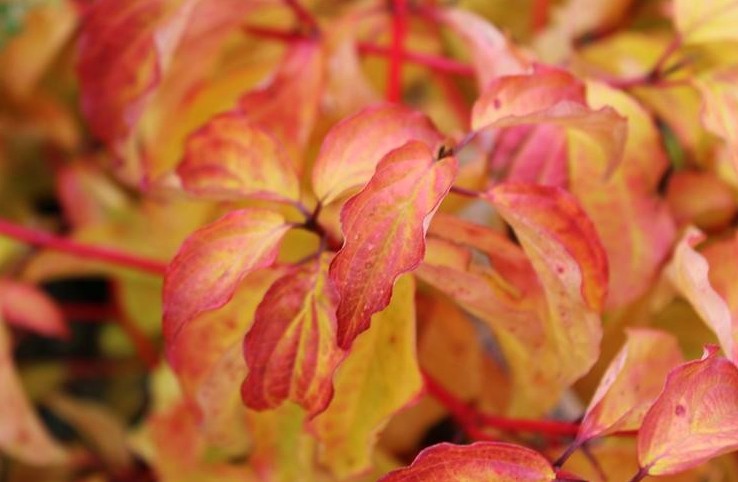 - Листья: Летом листья зеленые, осенью приобретают яркие оттенки желтого, оранжевого и красного.