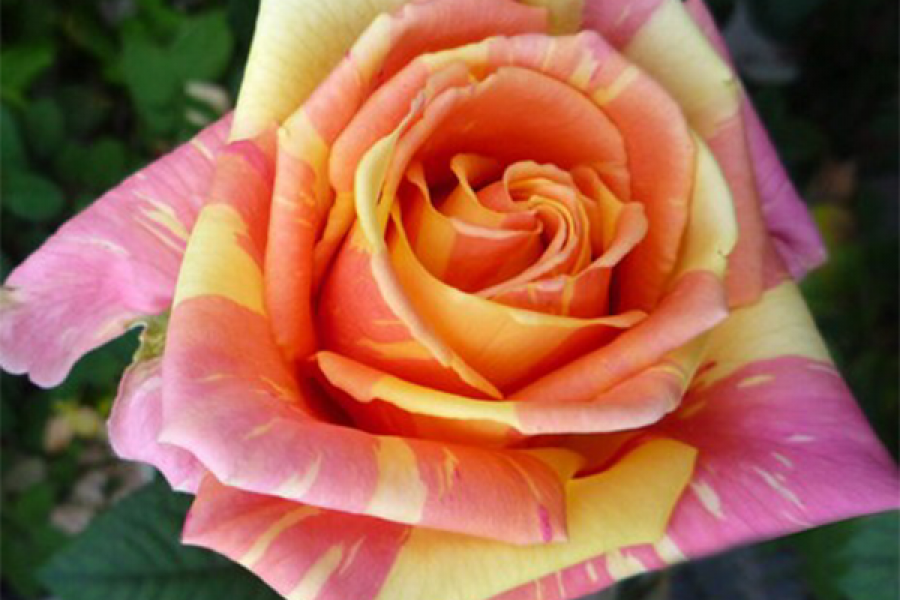 Погрузитесь в мир ярких красок и изысканного аромата с чайно-гибридной розой Фиеста (Fiesta). Этот сорт розы завораживает своими крупными, махровыми цветками, которые переливаются оттенками от насыщенного красного до золотисто-желтого. Каждый бутон раскрывается в элегантный цветок, создавая неповторимую игру цвета и света.